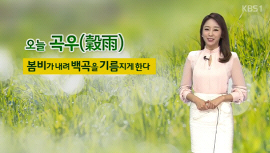 한편, 24절기 여섯 번째 절기인 곡우(穀雨)는 청명(淸明)과 입하(立夏) 사이에 있으며, 음력 3월 중순경으로, 양력 4월 20일 무렵에 해당한다. 곡우 의미는 봄비[雨]가 내려 백곡[穀]을 기름지게 한다는 뜻이다. <스포츠조선닷컴>