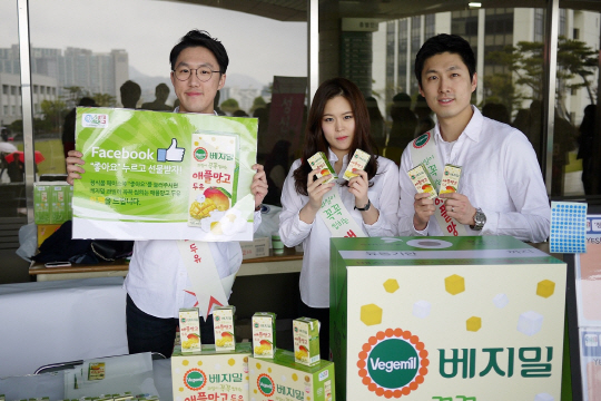 오리지날 두유 베지밀을 생산·판매하는 ㈜정식품(대표 이순구, www.vegemil.co.kr)은 대학생과 20대를 대상으로 '베지밀 과일이 꼭꼭 씹히는 애플망고 두유' 게릴라 샘플링을 진행한다고 21일 밝혔다.