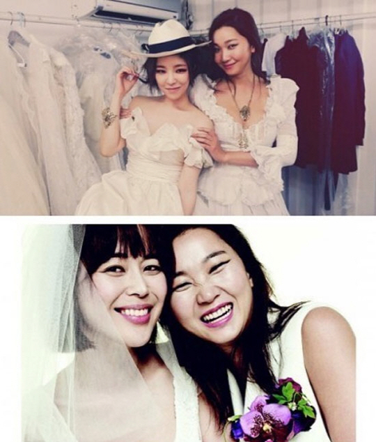 장윤주의 결혼 축하 화보에는 가인, 이하나를 비롯해 모델 한혜진과 이현이, 모델 박성진과 김원중, 그리고 디자이너 지춘희 등 평소 장윤주와 돈독한 우정을 자랑하던 친구들이 함께했다. <스포츠조선닷컴>