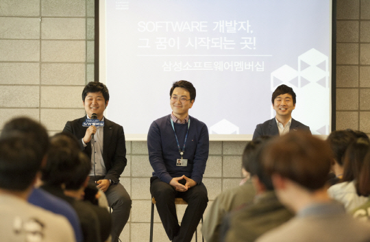 삼성전자가 지난 25일 삼성소프트웨어멤버십(이하 '삼성S/W멤버십') 강남센터에서 IT 개발자를 꿈꾸는 대학생 150여 명이 모인 가운데 '헬로, 소프트웨어멤버십' 토크 콘서트를 개최했다. 26일 삼성전자에 따르면 삼성S/W멤버십은 삼성전자가 소프트웨어 개발에 열정적이고 창의적인 대학생을 조기 발굴해 잠재능력을 마음껏 발휘할 수 있도록 1991년부터 운영하는 소프트웨어 전문가 양성 프로그램이다.