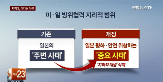 일본 자위대가 한반도 주변 지역에서 집단자위권을 행사할 경우 한국의 주권을 존중해야 한다는 내용이 미·일 새 방위지침에 반영됐다.