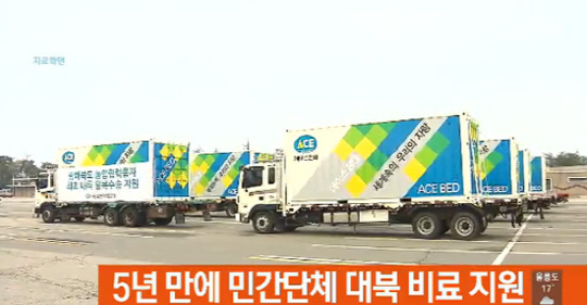27일 통일부 당국자는 "대북지원사업자인 재단법인 에이스경암(이사장 안유수 에이스침대 회장)의 온실조성사업 관련 육로 방북을 승인하면서 15t 규모 대북 비료지원도 승인했다"고 밝혔다.