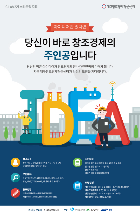삼성그룹이 대구 창조경제혁신센터와 함께 '2015 C-Lab 2기 스타트업' 공모전을 개최한다.