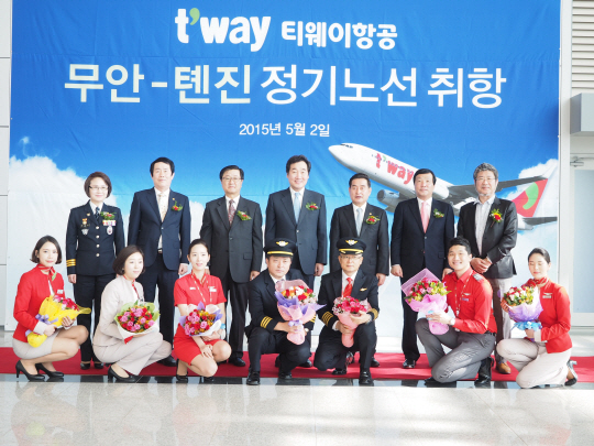 티웨이항공은 5월 2일 무안-톈진 국제선 정기 편 운항을 축하하는 취항식을 갖고 운항을 시작했다.