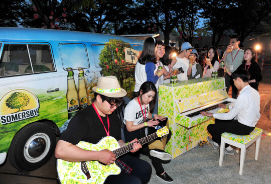 써머스비가 지난 2일 서울 방이동 올림픽공원에서 열린 '뷰티풀 민트 라이프 2015(Beautiful Mint Life 2015)'에서 '써머스비 피아노의 숲' 특별공연을 벌여 눈길을 끌었다.