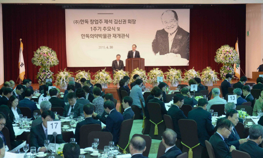 한독 창업주 故 김신권 회장 1주기 추모식과 한독의약박물관 재개관식이 지난달 30일 충북 음성에 있는 한독의약박물관에서 열렸다.