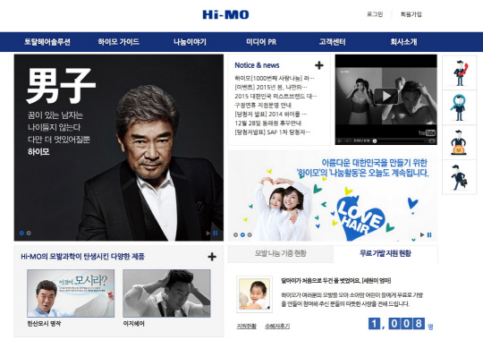 이 외에도 고객과의 소통을 강화하려는 목적으로 메뉴도 개편했다. 하이모에서 상시적으로 진행하는 소비자 대상 이벤트 내용은 메인 페이지 좌측에 실시간으로 롤링돼 확인할 수 있도록 변경했다. 하이모의 기업 특성을 살린 재능 기부 형태의 사회공헌활동 '러브헤어 캠페인'과 관련해 모발 기증자 수와 가발 지원 현황을 확인할 수 있는 메뉴를 신설했다.
