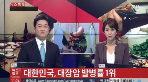 여성 대장암 발병률도 10만 명당 33.3명으로 아시아에서 1위를 기록했다. 전 세계 순위는 노르웨이 35.8명, 덴마크 35.7명, 네덜란드 33.9명, 뉴질랜드 33.5명에 이어 5위를 차지했다.