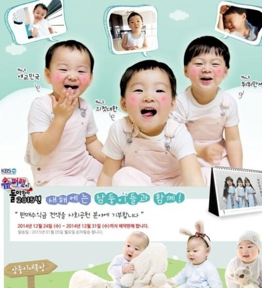 배우 송일국이 대한, 민국, 만세 삼둥이의 모습을 담은 달력의 수익금 1억원을 서울대학교병원에 기부했다.