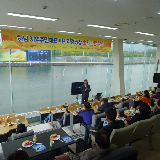 국민체육진흥공단 경륜경정사업본부가 지난달 29일 경기도 미사리경정장 경정마루에서 하남시 지역주민 대표 초청 방문 행사를 열었다.