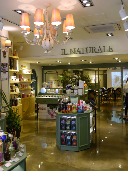 천연 뷰티 멀티샵 일나뚜랄레는 주력 상품 '엘보라리오'의 천연 화장품과 함께 '코트노아'의 소이캔들 디퓨저, '루멘'의 다양한 천연향초 등으로 구성된 편집숍이다. 매장에 들어서는 순간 은은한 천연 향과 함께 이탈리아 풍의 고급스러운 인테리어를 볼 수 있다.