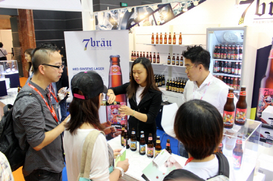 특히 이번 중화권 시장 공략을 위해 전략적으로 개발한 홍삼 라거 병맥주를 비롯해 '세븐브로이 라쿤 시리즈' 병맥주 7종을 해외 바이어와 일반 관람객 대상으로 시음 행사를 진행했다.