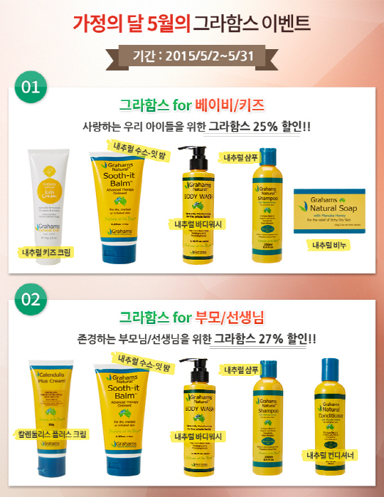 호주 대표 천연성분 스킨케어 브랜드 그라함스가 가정의 달 5월을 맞아 할인 이벤트를 진행한다.