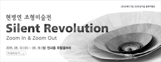 '현병연 조형미술전'은 '조용한 혁명(Silent Revolution)'을 주제로 인사동 우림갤러리에서 13일부터 19일까지 열린다. 이번 전시를 통해 현병연 작가는 보잘것없는 존재들이 만들어가는 세상과 가치에 대한 정의를 표현한다. 특히 하찮고 보잘것없는 것으로 규정된 존재 또한 아름답고 가치 있는 존재임을 표현하기 위해 케이블타이와 한지로 만든 이색적인 작품을 탄생시켰다. 이 외에도 초콜릿으로 만든 색다른 조형 작품도 만나볼 수 있다. 현병연 작가는 제1회 대한민국 자원순환 정크아트 공모전 일반부문 환경부장관상과 제6회 청주국제공예비엔날레 공모전 그랑프리(대상)을 수상한 인정받은 작가다.