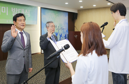 하나금융그룹은 한국장학재단과 함께 8일 오전 종로구 청진동 하나은행 본점에서 김정태 하나금융그룹 회장과 곽병선 한국장학재단 이사장이 참석한 가운데 남북한 대학생들의 교류와 통일의식 고취를 위한 '미래 통일리더 아카데미' 발대식을 개최했다고 밝혔다.