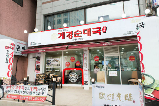 한편, 봉천점 오픈을 시작으로 본격적인 가맹점 모집에 들어간 계경순대국은 돼지사골과 한약재를 함께 달인 양념장을 사용하며 100% 국내산 돼지고기와 순대를 부담 없는 가격인 4~5천원 대에 판매한다. 특히 본사가 국물에서부터 고기까지 완제품으로 공급해 조리가 간편해지는 동시에 회전율이 뛰어나고 계경순대국 특유의 진하고 칼칼한 맛이 중장년에서부터 젊은이들까지 두터운 고객층을 형성하고 있다.
