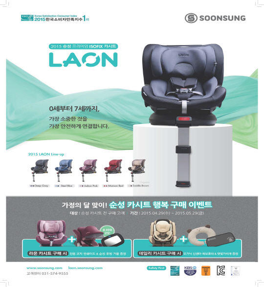 유아용 카시트 전문기업 ㈜순성산업(대표 이덕삼, www.soonsung.com)이 가정의 달 5월을 맞아 고객들을 위한 특별 할인과 다양한 사은 혜택을 제공한다.