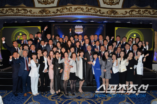 | '2015그랜드 마스터' 시상식에 참석한 GMI와 GM 차이나 내 최우수 딜러, 대리점 및 서비스센터 대표들이 배우자와 함께 포즈를 취하고 있다. 사진 중앙 앞에서 두 번째 열이 세르지오 호샤(Sergio Rocha) 한국지엠 사장, 호샤 사장의 오른쪽 대각선 위가 스테판 자코비(Stefan Jacoby) GMI 사장. 사진제공=한국지엠 |