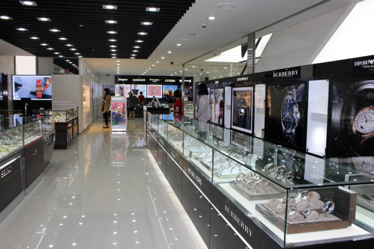 13층에는 론진, 티쏘, 라도, 엠포리오 아르마니 등의 시계와 액세서리 매장이 자리잡았다. 또한 홍콩 최대의 명품시계와 주얼리 매장인 '엠퍼러 와치 앤 주얼리'(Emperor Watch & Jewellery)가 국내 최초로 입점했다. 이어 14층에는 주류 및 담배 매장과 외국인 관광객을 겨냥해 국산 화장품, 패션, 식품, 전자제품 매장이 들어섰다.