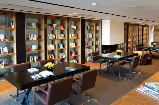 서울의 프리미엄 시니어 타운 '더 클래식 500'은 도서실 '북앤트리'에 7000여권 다양한 도서를 구비해, 시니어 입주민들의 인문학 공부와 정서 함양을 돕고 있다.