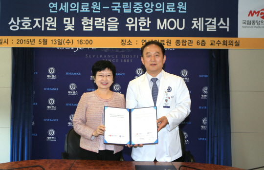 연세의료원(의료원장 정남식)과 국립중앙의료원(원장 안명옥)이 국민보건 향상과 의학발전을 위해 협력한다.