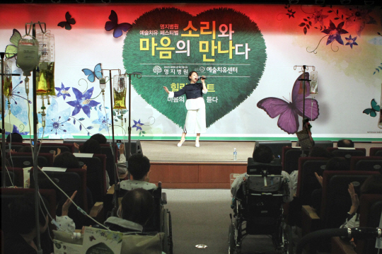 환우 및 보호자, 직원 등 300여 명이 명지병원 대강당을 가득 메운 가운데 진행된 제3회 예술치유페스티벌의 개막공연은 영화배우이자 국악인인 오정해 씨의 사회로 '불후의 명곡' 최다 우승자인 가수 알리, '히든싱어' 윤종신 편 준우승자 뮤지컬 가수 최형석, 천재 바이올리니스트 이제린, 정가단 아리의 공연으로 1시간 30분을 열기로 가득 채웠다.