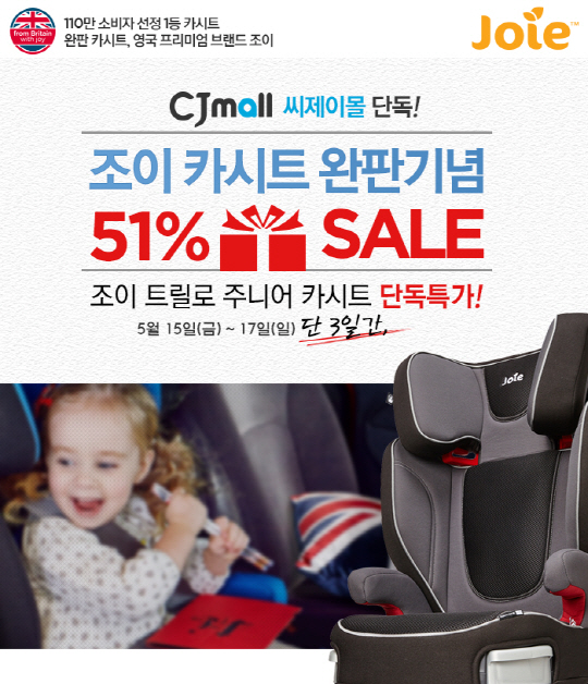 영국 프리미엄 안전 카시트 브랜드 조이(Joie)가 조이 카시트 완판을 기념해 고객감사 특가 이벤트를 17일까지 진행한다.