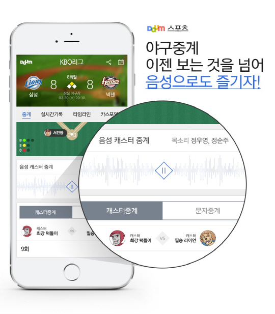 다음스포츠 KBO리그 음성 캐스터중계 서비스 오픈