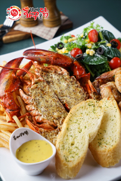 이번에 출시한 신메뉴는 랍스터와 치킨을 동시에 맛 볼 수 있는 랍스터치킨으로 랍스터치킨은 핵산이 풍부하게 함유되어 노화방지에 탁월하고 칼로리와 콜레스테롤 함량이 적은 랍스터와 화덕치킨의 퓨전으로 탄생된 최고의 고급퓨전요리라고 할 수 있다.