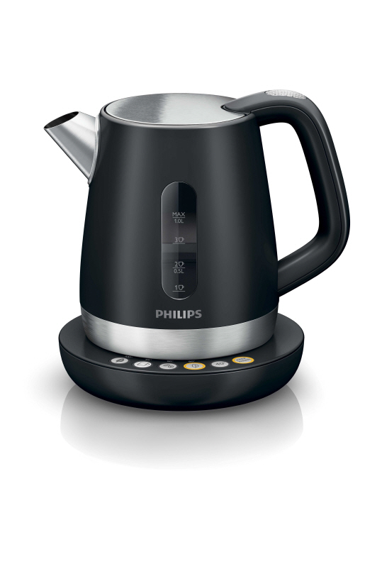 필립스 아방세 메탈 전기주전자(HD9385/21)는 40, 80, 90, 95, 100 ℃ 등 5가지 온도 설정 버튼이 마련돼 있어 해당 버튼을 누르면 별도로 온도를 맞추지 않아도 원하는 해당온도로 바로 끓여준다. 차, 인스턴트 커피, 핫초코 등의 음료뿐 아니라 분유를 만들 때 온도를 맞추는 수고로움을 덜어줘 엄마들로부터 '분유 포트'로 불리며 큰 인기를 구가하고 있다. 처음 설정한 온도를 30분까지 그대로 유지해주는 보온기능까지 갖춰 식어버린 물을 다시 끓여야 하는 과정도 생략된다. 주전자 열판 및 주입구에는 변색이나 녹슬 염려가 없는 스테인리스 스틸 소재를 채택해 내구성이 뛰어나며, 물이 걸러지는 주입구에는 마이크로 미세 필터를 장착하여 석회질 입자를 남기지 않고 청결하게 사용할 수 있다. 여기에 전원이 연결되어 있더라도 주전자 내부에 물이 없는 상태에서의 가열과 누전을 방지하는 4단계 안전 시스템을 장착하고, 물이 끓는 상태나 주전자 본체와 받침대가 분리된 상태에서는 자동으로 전원이 차단되어 안전성을 강화했다.