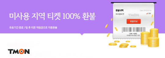 ㈜티켓몬스터(대표 신현성)가 운영하는 국내 대표 소셜커머스 티몬(www.tmon.co.kr)이 18일부터 구매한 지역서비스 미사용 쿠폰을 100% 적립금 형태로 자동 환불한다.