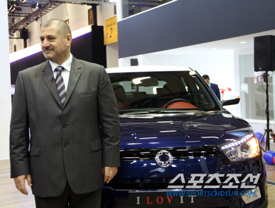 | 쌍용자동차 터키대리점 니하트 사슈바로글루(Nihat Sahsuvaroglu) 대표가 프레스데이 행사를 통해 공식 출시한 티볼리 옆에서 포즈를 취하고 있다. 사진제공=쌍용자동차 |