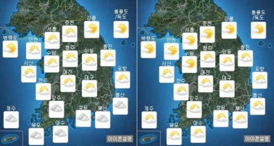 오늘 아침 예상 최저기온은 △서울 15도 △대전 14도 △부산 17도 △대구 18도 △광주 17도 등으로 어제보다 조금 높겠다. 낮 예상 최고기온은 △서울 28도 △대전 28도 △부산 23도 △대구 28도 △광주 25도 등으로 어제와 비슷하겠다. <스포츠조선닷컴>