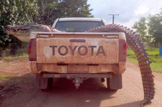 실제 차량의 화물칸에 몸을 실은 거대 악어의 몸길이는 무려 4.8m에 달한다. 짐칸에 몸을 다 싣기에 버거웠을 정도로 큰 덩치를 소유하고 있다. 특히 트럭이 작아 보일 정도로 압도적인 크기가 보는 이들의 놀라움을 자아내고 있다.