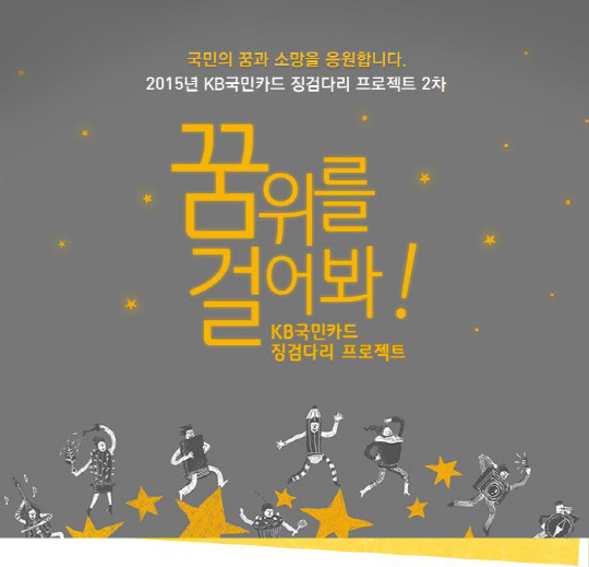 KB국민카드(www.kbcard.com / 사장 김덕수)가 어려운 환경 속에서도 미래에 대한 꿈과 희망을 이루고자 노력하는 국민들을 후원하는 「2015 징검다리 프로젝트」 2차 캠페인을 진행한다.