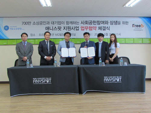 본 협약은 5월 26일, 프리비솔루션 대회의실에서 직능소상공인수익법인의(김성태부사장)과 제조사인 (주)프리비솔루션의(김재현대표)는 매장용 스마트폰 보조 배터리 '애니스팟' 지원사업에 관한 업무협약을 체결했다.