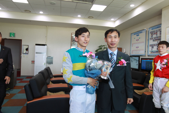 기수 김용근이 지난 24일 렛츠런파크부산경남에서 300승 달성 시상식을 가졌다. 김용근은 지난달 24일 '샤프게일'과 우승을 합작해 현역 기수 통산 6번째 300승 고지에 올랐다. 지난 2006년 기수로 데뷔한 김용근은 데뷔 첫해 23승을 달성해 가능성을 인정 받았다. 2012년에는 기수 부문 시즌 최다승(91승)을 기록한 바 있다. 올해에는 39승으로 다승 부문 2위에 랭크되어 있다.