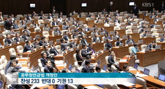 그 동안 논의 과정에서 극심한 진통을 겪었던 공무원연금법 개정안이 국회에 제출된 지 7개월만에 본회의 문턱을 넘었다.