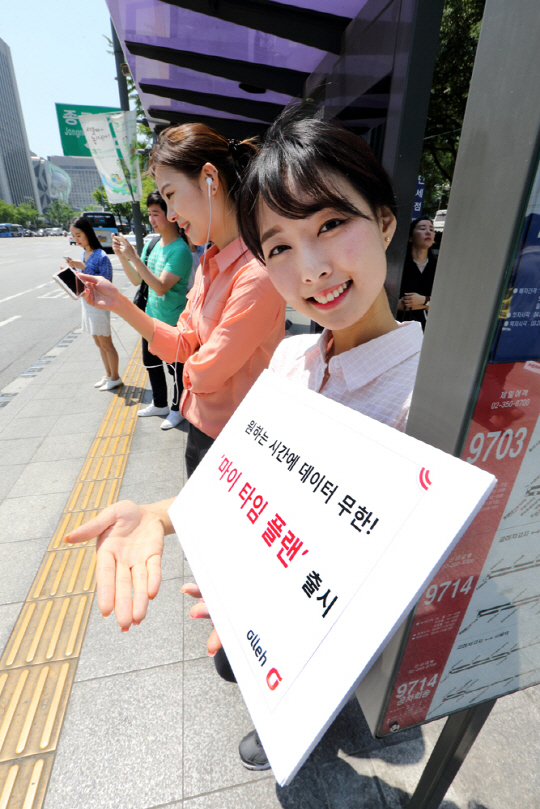 KT는 소비자의 데이터 사용 부담을 줄이기 위해 고객이 원하는 시간을 직접 선택해 데이터를 무제한 사용할 수 있는 부가서비스 '마이 타임 플랜'도 선보인다.