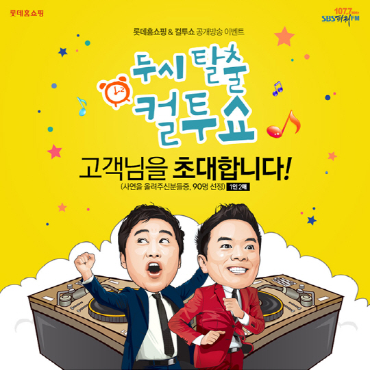 롯데홈쇼핑(대표 강현구, www.lotteimall.com)이 고객 감사 이벤트 일환으로, 인기 라디오 프로그램 SBS 파워FM '라디오 두시탈출 컬투쇼'와 연계한 고객 초청 이벤트를 실시한다.