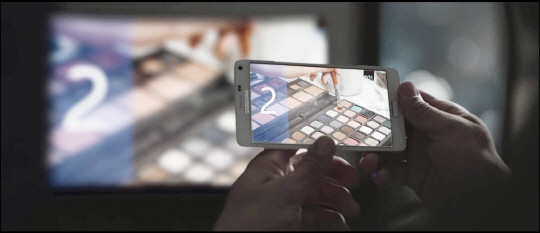 주인공인 아빠는 TV에서 화장하는 법을 보고, 또 거울 앞으로 이동해 휴대폰으로 다시 보며 화장법을 배워 딸에게 해준다.