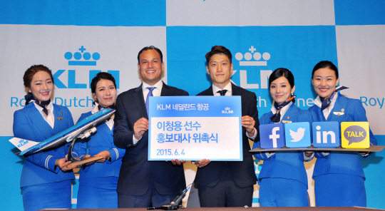 KLM 네덜란드 항공(이하 KLM)은 4일 서울 플라자호텔에서 카카오톡 서비스 론칭 소식과 함께 잉글랜드프리미어리그에서 뛰고 있는 이청용 선수를 홍보대사로 위촉했다.