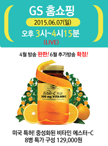 한국솔가의 대표 상품인 "솔가에스터-C 비타민 500mg"의 홈쇼핑 3차 방송이 오는 7일 오후 3시 GS 홈쇼핑을 통해 방송된다.