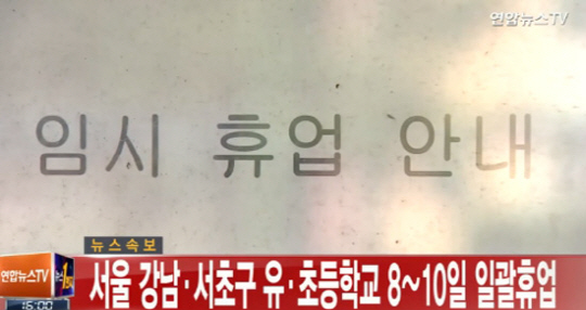 서울시교육청이 8일부터 사흘간 서울 강남과 서초구에 있는 유치원과 초등학교에 대해 일괄 휴업하기로 했다.