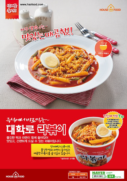 하우스원푸드(www.hsofood.com)는 이같은 점에 주목, 편하게 즐길 수 있는 대학로라볶이를 선보이며 관심을 받고 있다. 8일 하우스원푸드에 따르면 대학로라볶이의 특징은 3분이면 조리가 가능하다는 즉석식품이다. 떡의 쫄깃함이 가장 좋다는 전통 시루 방식을 이용해 떡의 맛을 살렸다. 간편식품임에도 불구하고 제대로 된 라볶이 맛을 느낄 수 있도록 만든 것이다.