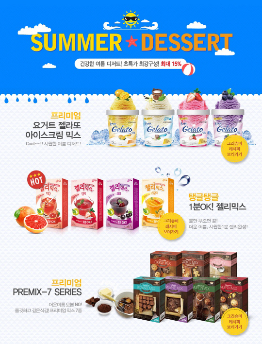 브레드가든 공식 온라인 쇼핑몰인 '이지베이킹(www.ezbaking.com)'에서 믹스제품을 응용한 다양한 수제 디저트 레시피를 제공하고 있다. 이와 함께 이벤트 기간 동안 홈메이드 여름 디저트 믹스제품과 어울리는 포장 재료도 30% 할인가로 제공한다.