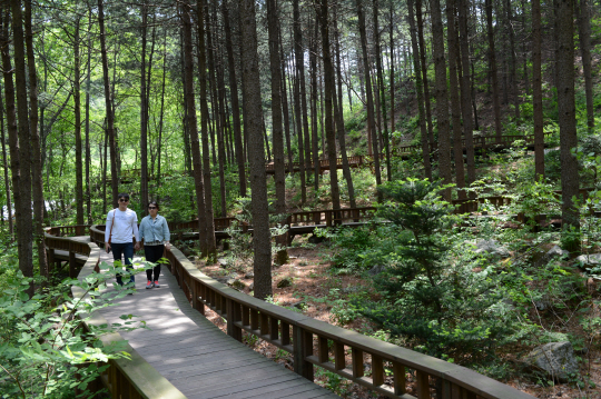 어느새 여름의 초입에 서있다. 여행을 떠나기에 좋은 시절. 하지만 선뜻 어디를 찾아 떠나라는 제안을 하기도 힘든 요즘이다. 메르스(중동호흡기증후군) 라는 불청객의 엄습 탓이다. 그렇다고 마냥 일상을 접어두고 지낼 수는 없다. 건강한 생활 습관이 그 대처법이다. 나들이의 경우 사람이 많이 모이는 곳보다는 상대적으로 한적한 곳을 찾는 편이 낫다. 이럴 경우 숲도 그 대안이다. 이즈음 숲은 연중 가장 싱싱한 기운을 발산한다. 특히 일조량이 최고조에 이르는 6월은 신록이 짙은 기운을 더해간다. 무엇보다도 숲의 가장 큰 매력은 심신을 다스려주는 힘에 있다. 숲속에 발을 들여 놓으면 편안한 기운이 마음을 다독여도 주지만 숲에서 뿜어져 나오는 피톤치드는 스트레스 유발 호르몬까지 잠재워 분노조절에도 도움이 된다. 때문에 온 가족이 함께 잘 가꿔진 휴양림 속으로 한나절 나들이를 떠난다면 일상탈출 속에 스스로 위무를 청할 수 있을 터이다. 굳이 하룻밤이 아니어도 좋다. 숙박 예약이 하늘의 별 따기처럼 어려운 휴양림의 현명한 활용법은 차라리 가벼운 숲속 나들이가 최고다. 마침 휴양림은 주로 산과 더불어 계곡, 강, 바다와 인접한 곳이 많아 연계 관광을 즐기기에도 안성맞춤이다. 가족과 함께 떠나면 좋을 휴양림을 소개한다.