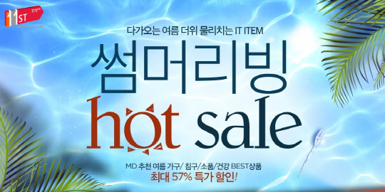 SK플래닛 11번가(www.11st.co.kr)가 여름 시즌에 어울리는 가구, 침구, 인테리어 소품 등을 최대 57% 할인 판매하는 '썸머 리빙 핫 세일' 기획전을 30일까지 실시한다.