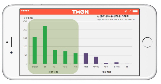 티몬은 지난 5월말까지 시간대별 모바일 매출을 분석한 결과 해당 프로그램들이 방영되는 22~24시간대의 식품관련 매출이 다른 시간대 평균 대비 65%가량 높게 나왔다. 지난해 동기간 대비 모바일 식품카테고리 매출은 51%가량 성장한 것으로 나타났다.