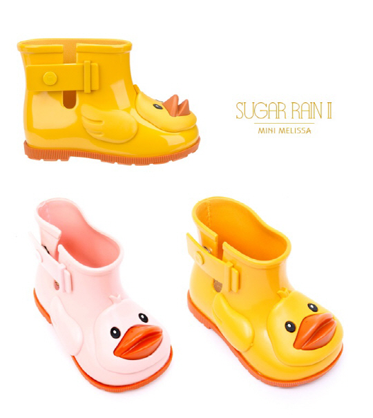 장마시즌을 대비한 미니멜리사의 슈가레인부츠는 아이들이 좋아하는 귀여운 오리 캐릭터와 여아들을 위한 리본 디자인 장식이 돋보이는 부츠(BOOT BB)시리즈로 특유의 감각적인 컬러와 입체적인 디자인이 돋보인다. 미니멜리사(mini melissa)는 1979년 브라질에서 탄생한 이래 젤리슈즈의 상징적인 브랜드로 30년간 그 명성을 이어오고 있다. 특허 받은 멜플렉스(Melflex) 소재가 아이들이 착용하기에 부드럽고 편안하며 신발마다 과일 특유의 향을 담아 신는 즐거움까지 더한다.